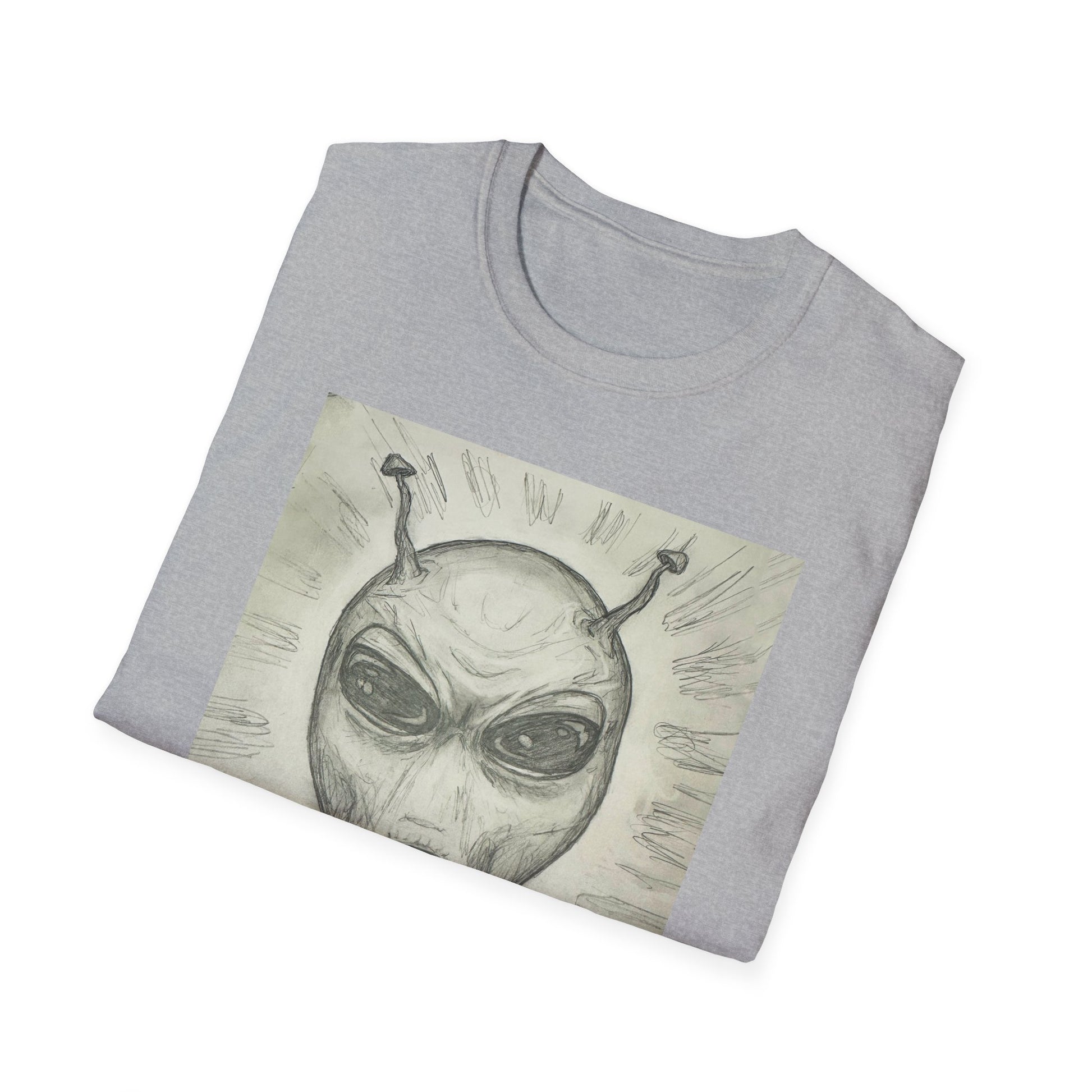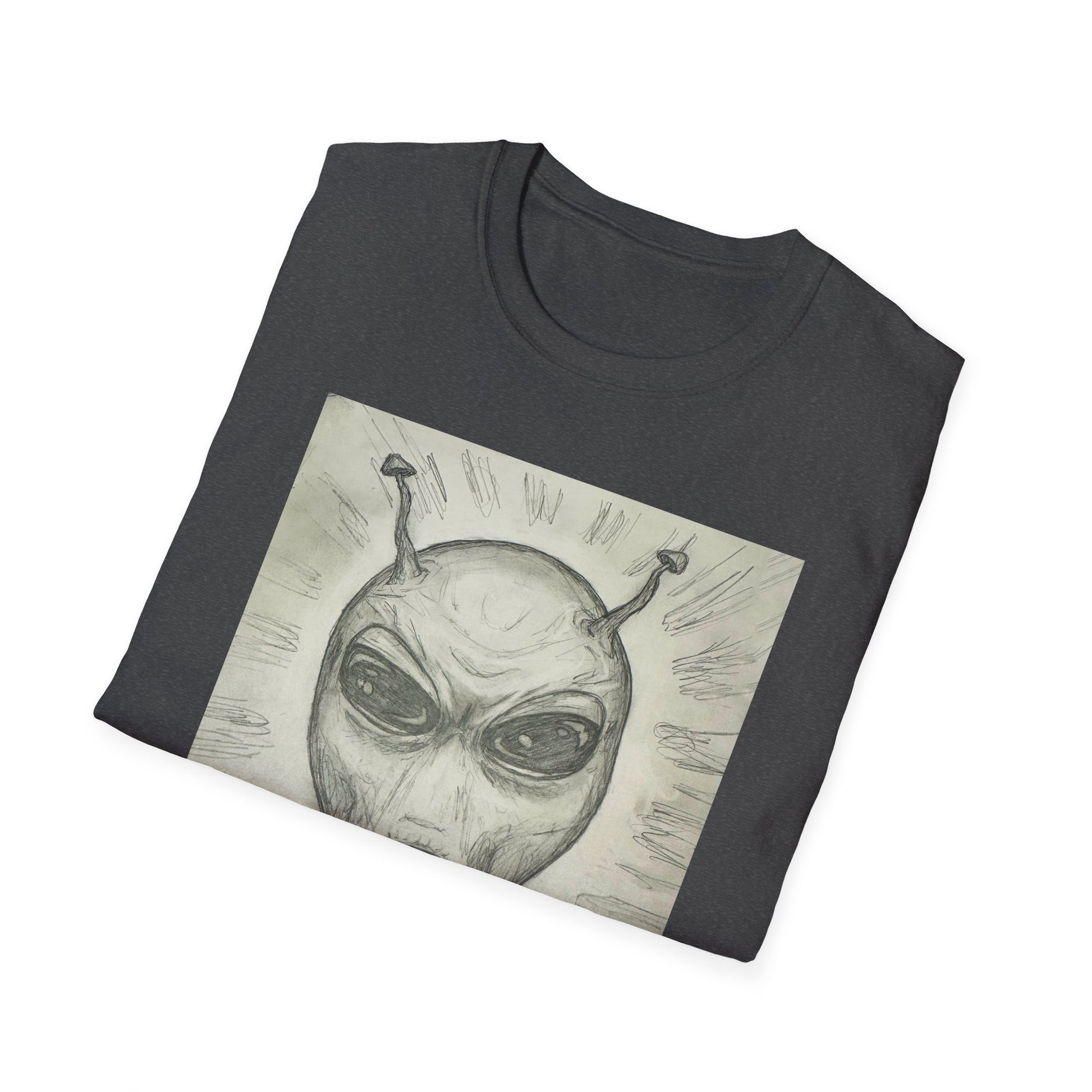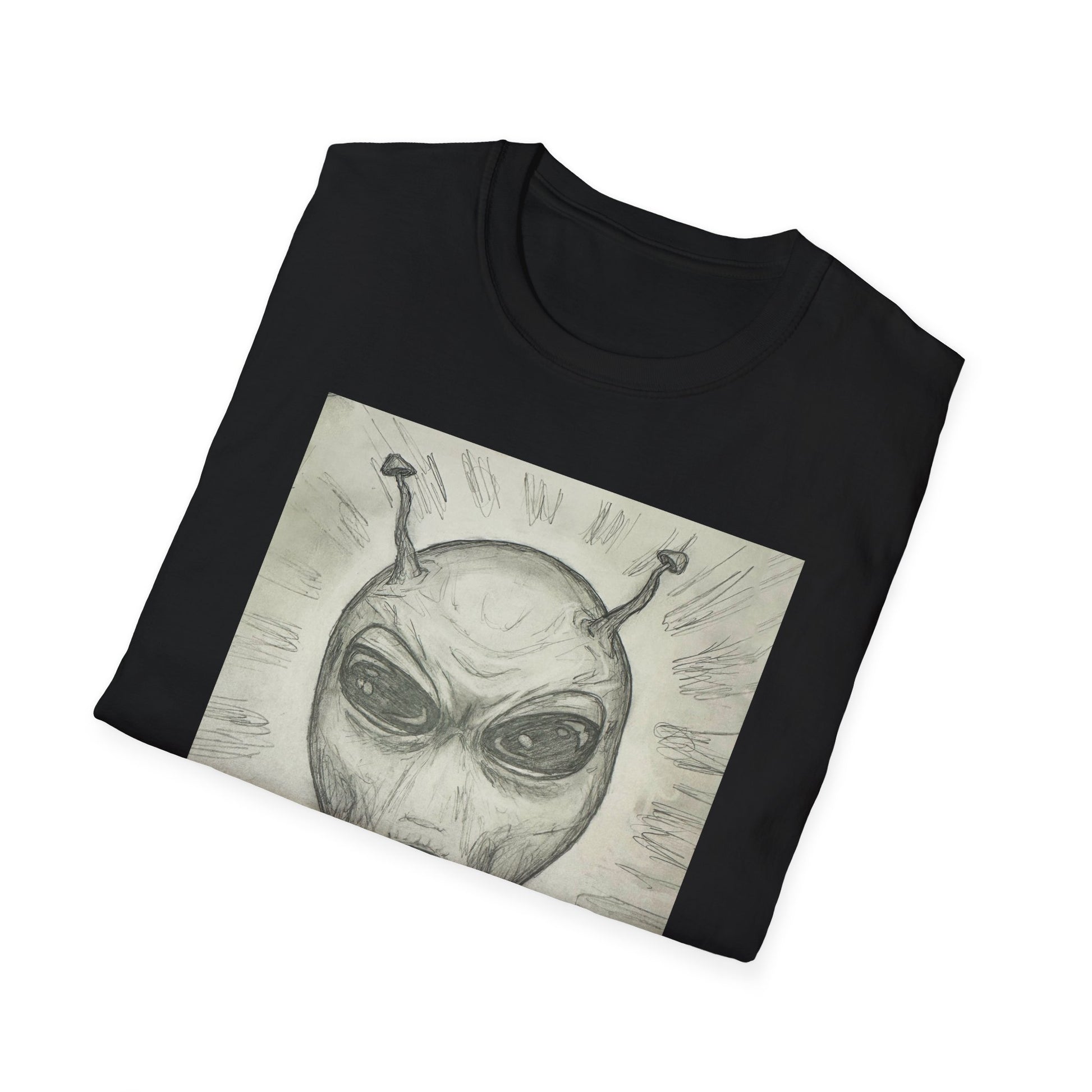 Alien Sketch B & W Unisex Softstyle T-Shirt, Casual Graphic Tee, Sci-Fi Lover Apparel, Unique Gift for UFO Enthusiasts, Everyday Wear