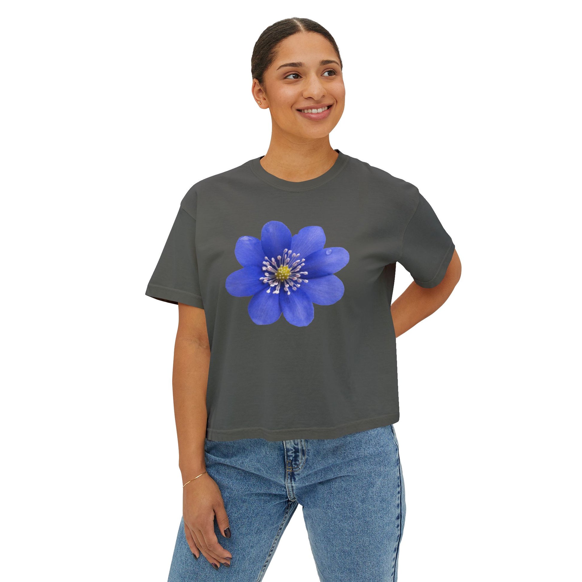 Botanical Women's Boxy Tee, Floral Crop Top, Casual Summer Wear, Gift for Her, Nature Lover Shirt