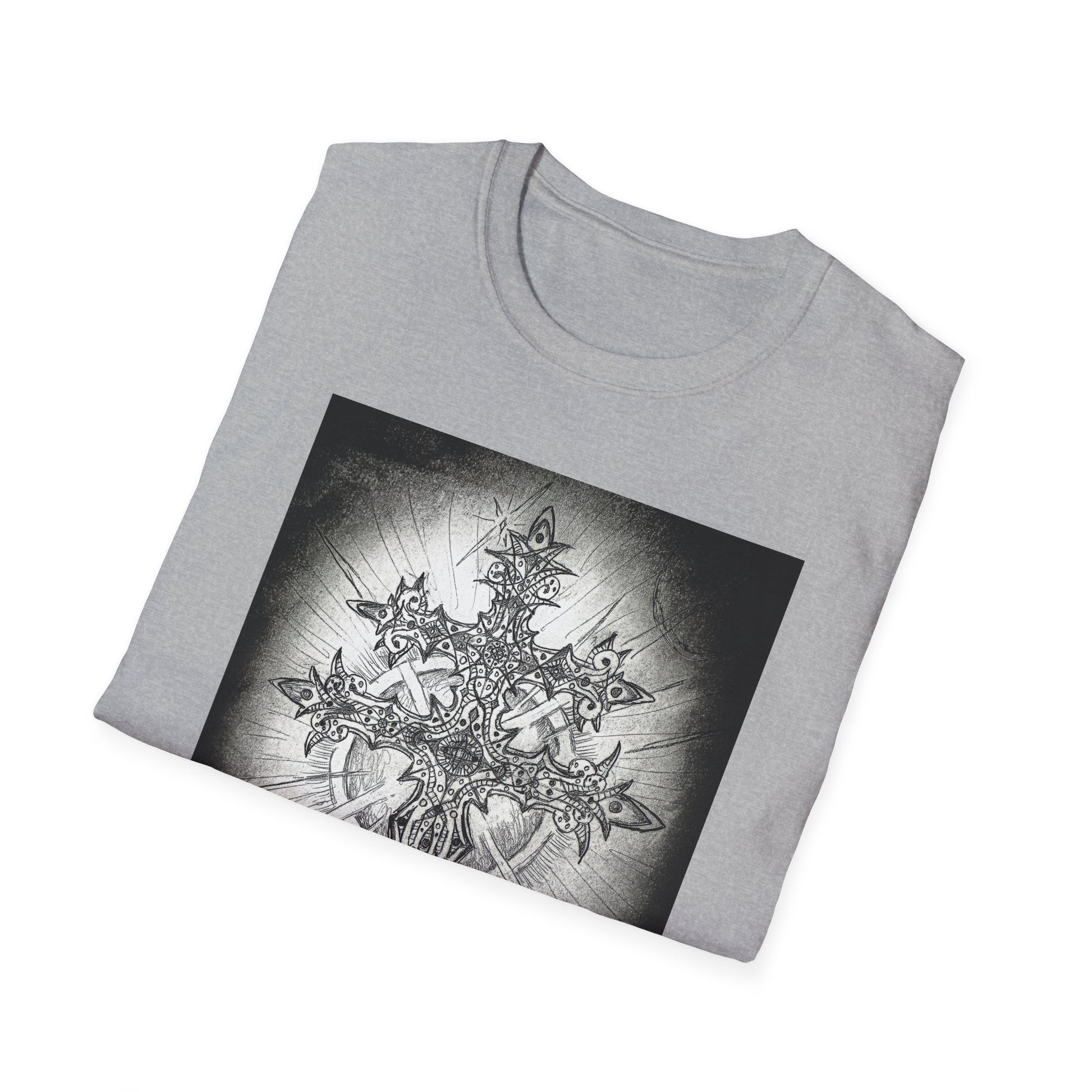 Celtic Cross Graphic Tee, Unisex Softstyle T-Shirt, Spiritual Cross Design Shirt, Casual Wear, Gift for Him/Her