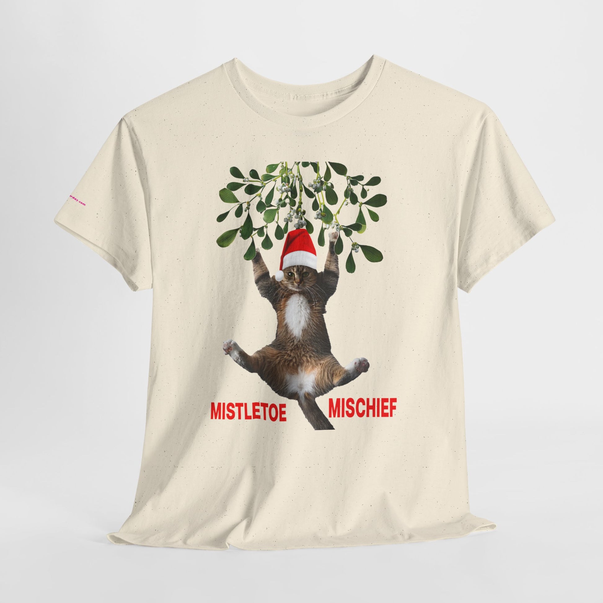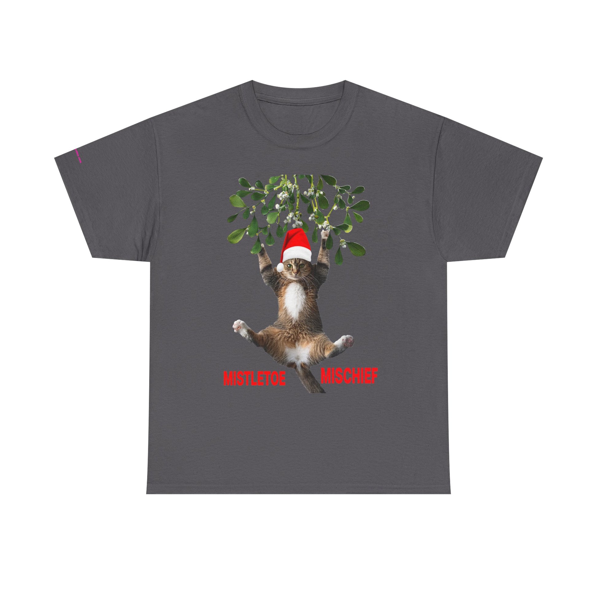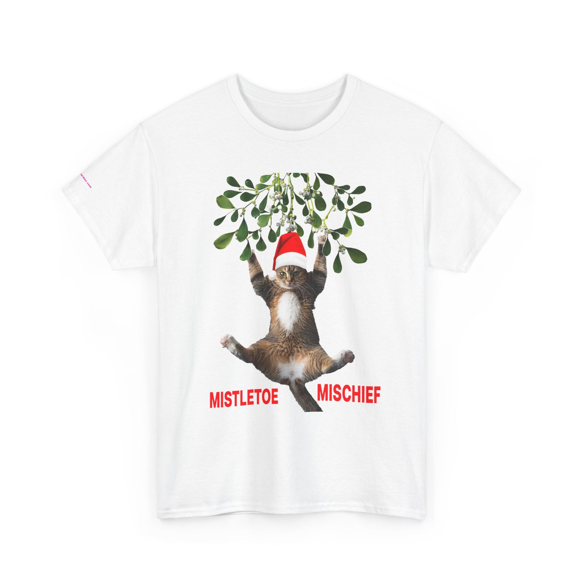 Christmas Cat & Mistletoe Tee — "Mistletoe Mischief" Holiday T-Shirt