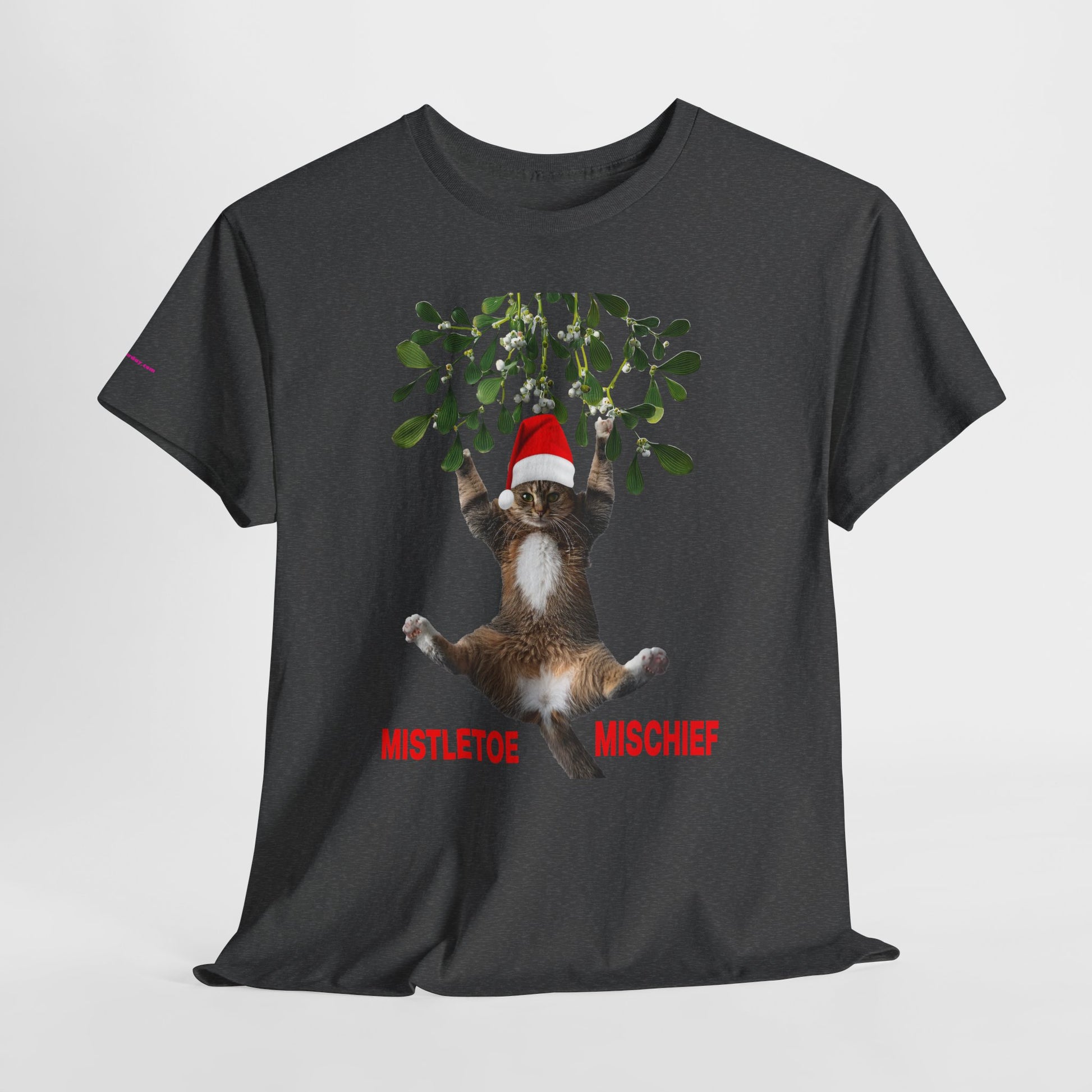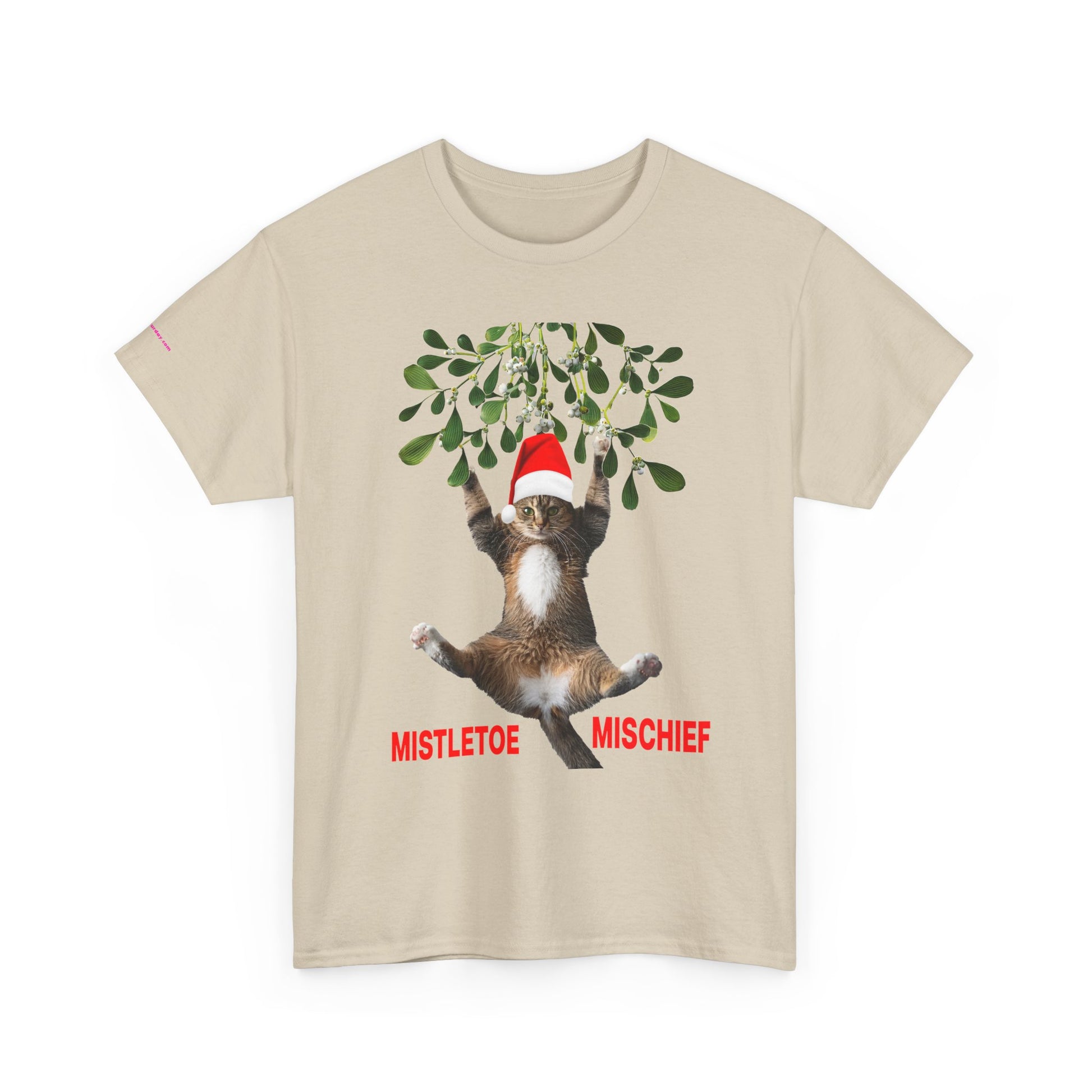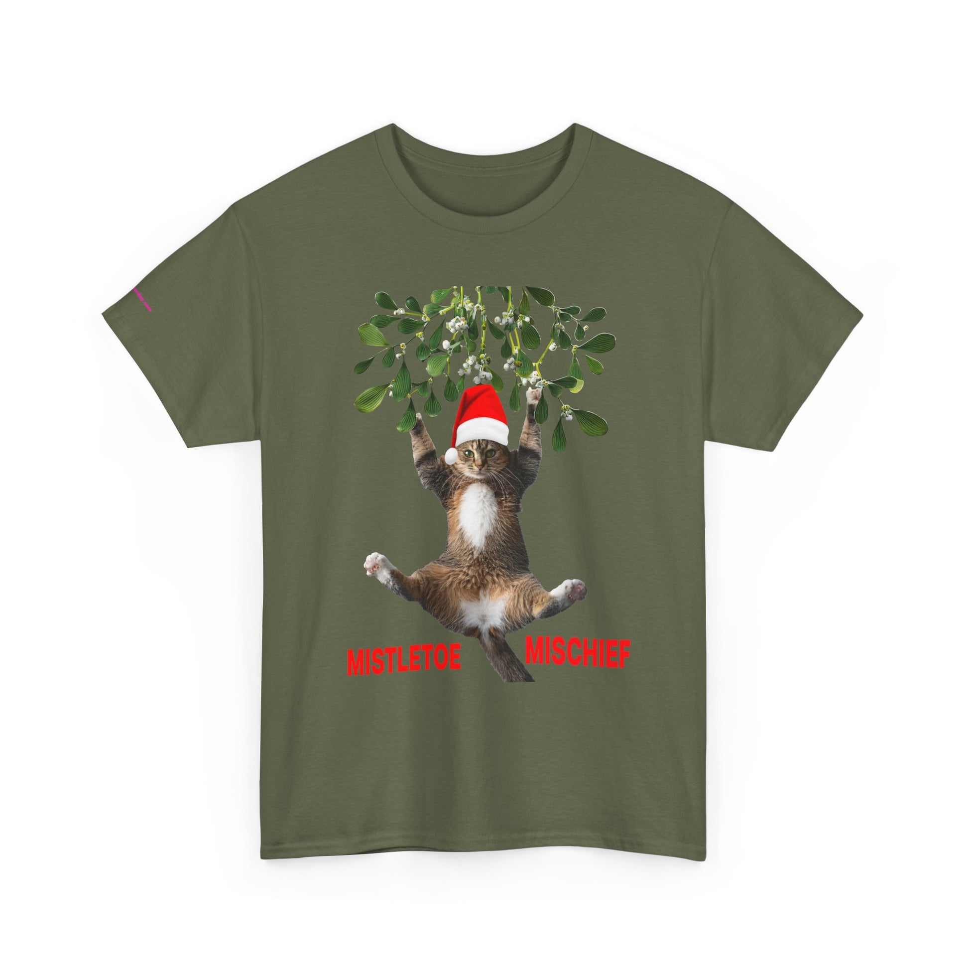 Christmas Cat & Mistletoe Tee — "Mistletoe Mischief" Holiday T-Shirt