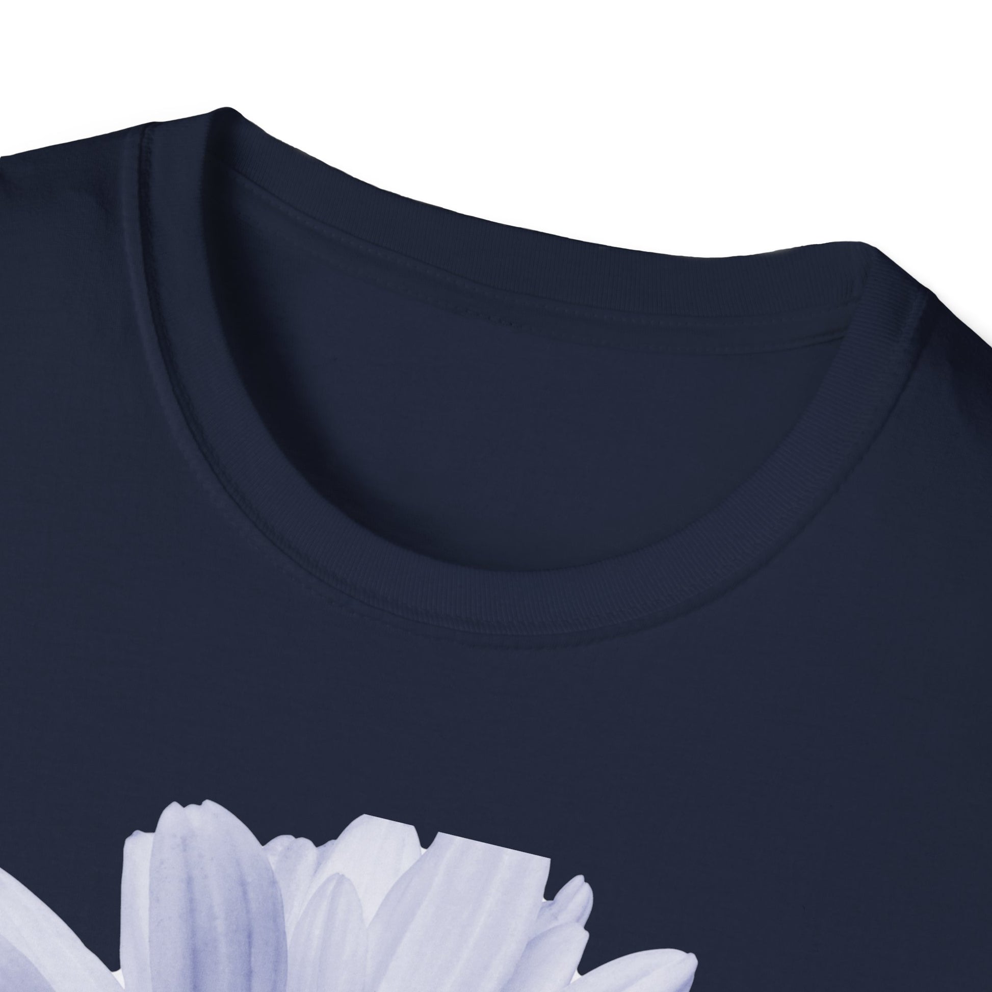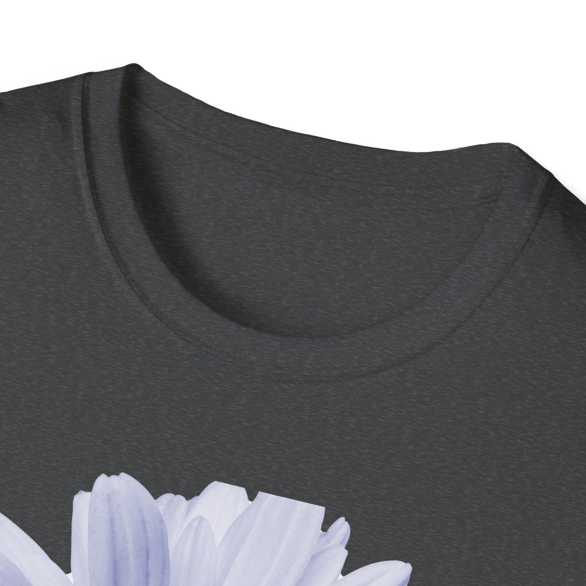 A lightweight, everyday tee with a soft, painterly daisy at its center — calm, gentle, and quietly expressive. The single floral bloom sits large on the chest in muted lavender tones, giving the shirt a breezy, artful look that reads both modern and nostalgic. Wear it on slow mornings with jeans and a cardigan or layer it under a jacket for city walks. The shirt’s smooth ring-spun cotton feels breathable against the skin and holds printed detail with clarity, so the delicate petals stay soft and defined wash after wash. For people who collect simple, nature-inspired pieces, this tee slips easily into outfits for springtime strolls, weekend markets, quiet gatherings, or relaxed work-from-home days. It speaks to a calm, considered style — subtle, honest, and quietly joyful.