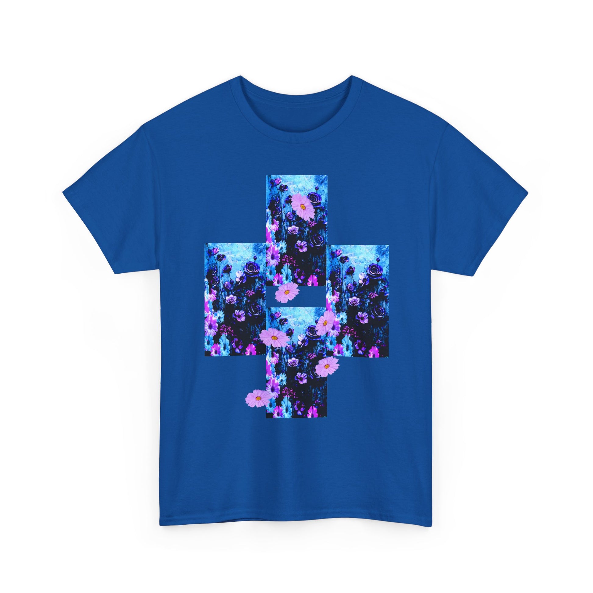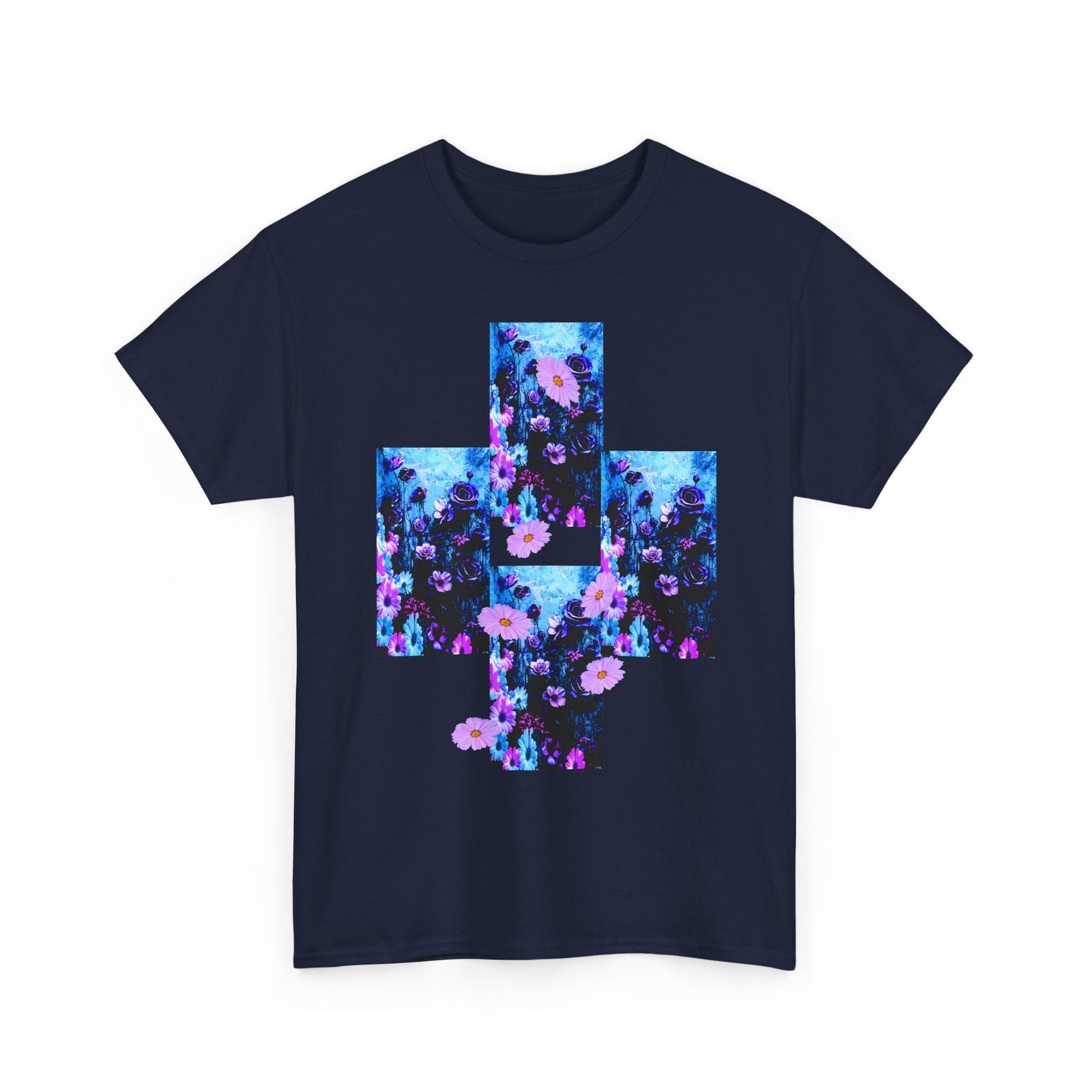 Floral Blue Cross T-Shirt — Vintage Indie Floral Graphic Tee