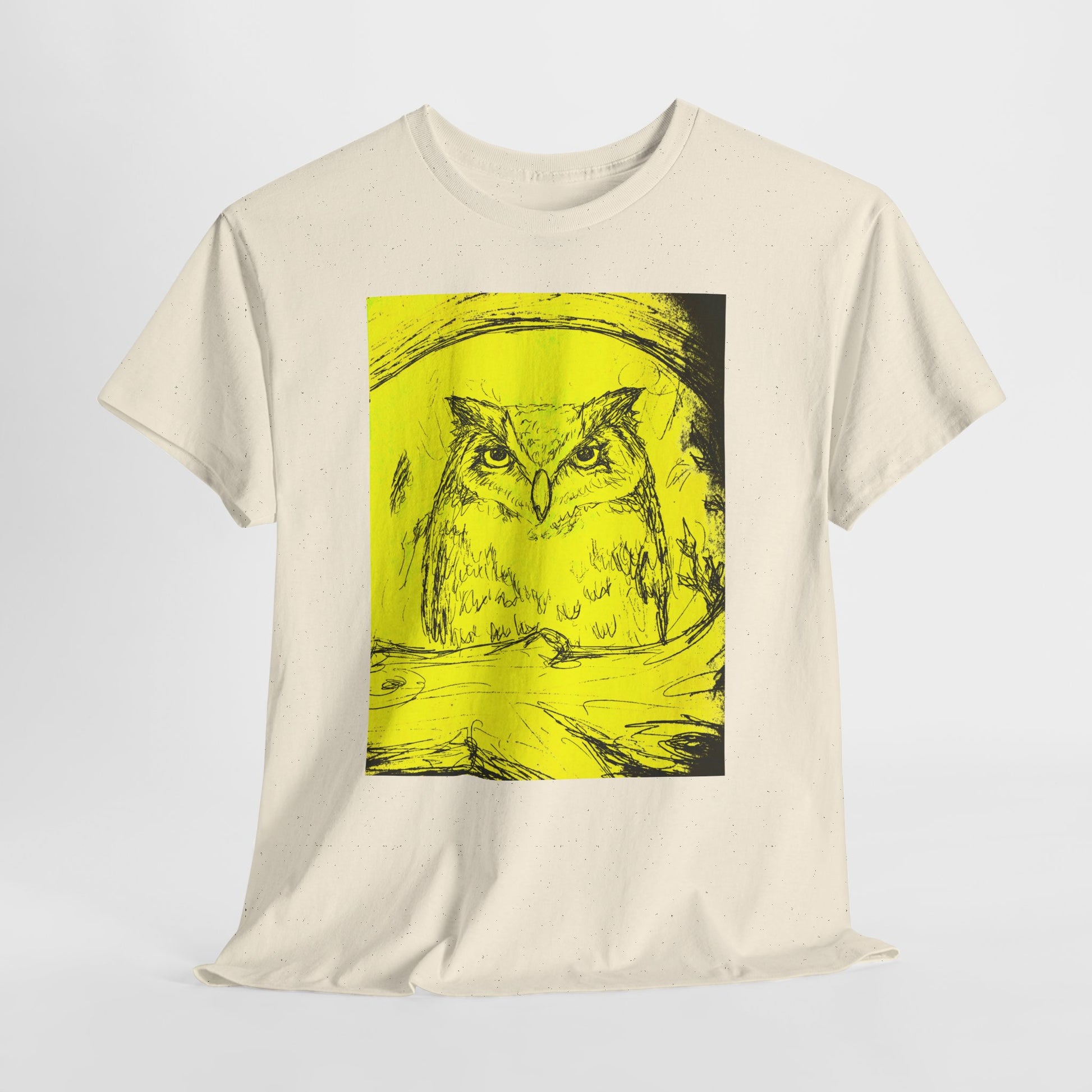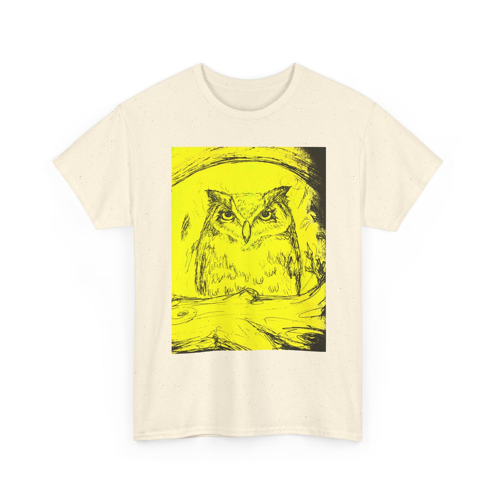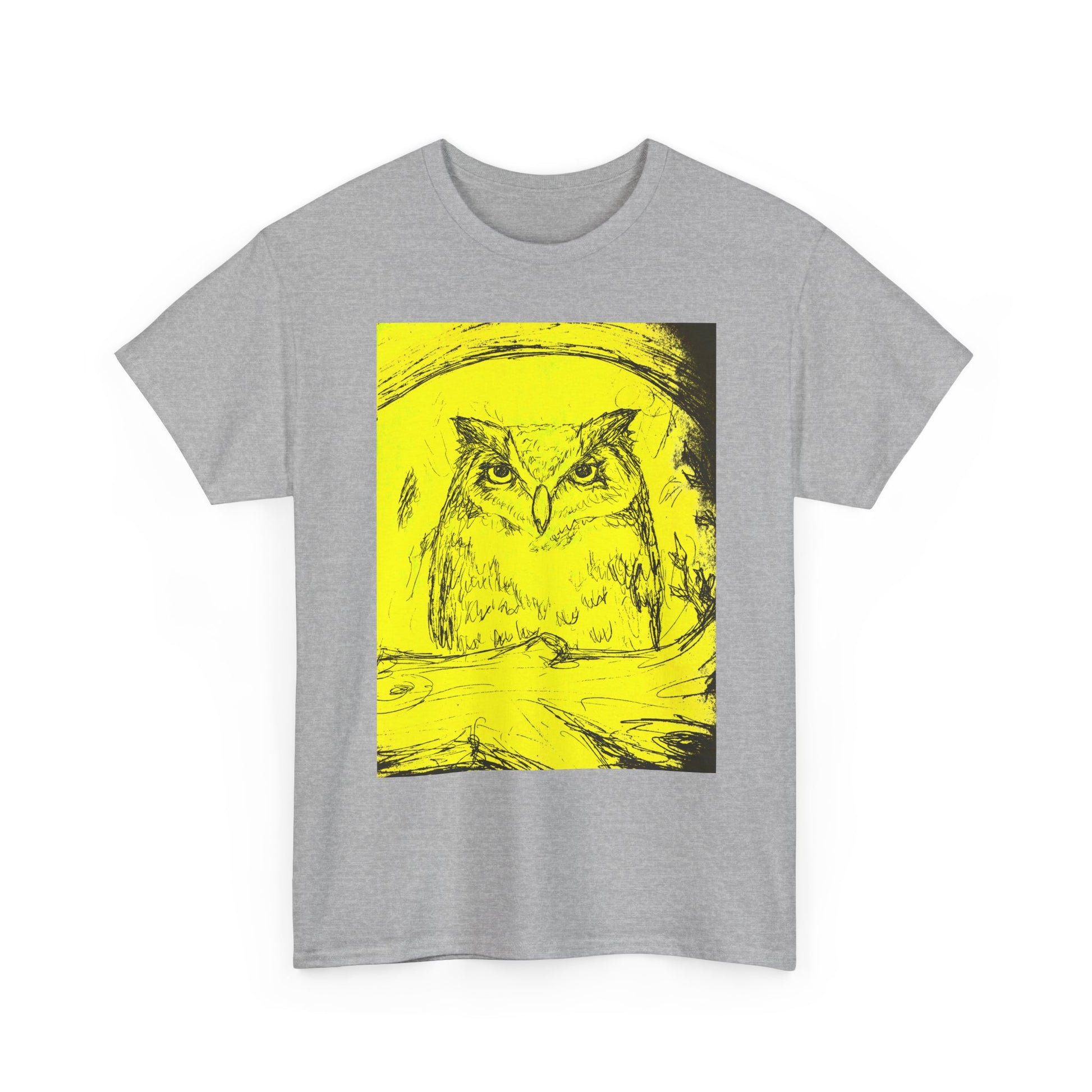 Hand drawn yellow owl sketch by local large Chris Cleveland The Gildan 5000 heavy cotton tee is a dependable classic made for everyday wear and custom printing. Its 100% cotton fabric is tightly knit to give designs sharper detail and long-lasting color. The seamless body eliminates side seams for a smoother fit, while reinforced shoulders keep the shirt in shape through repeated washes. Durable, comfortable, and print-friendly, the Gildan 5000 is a trusted staple for personalized apparel.