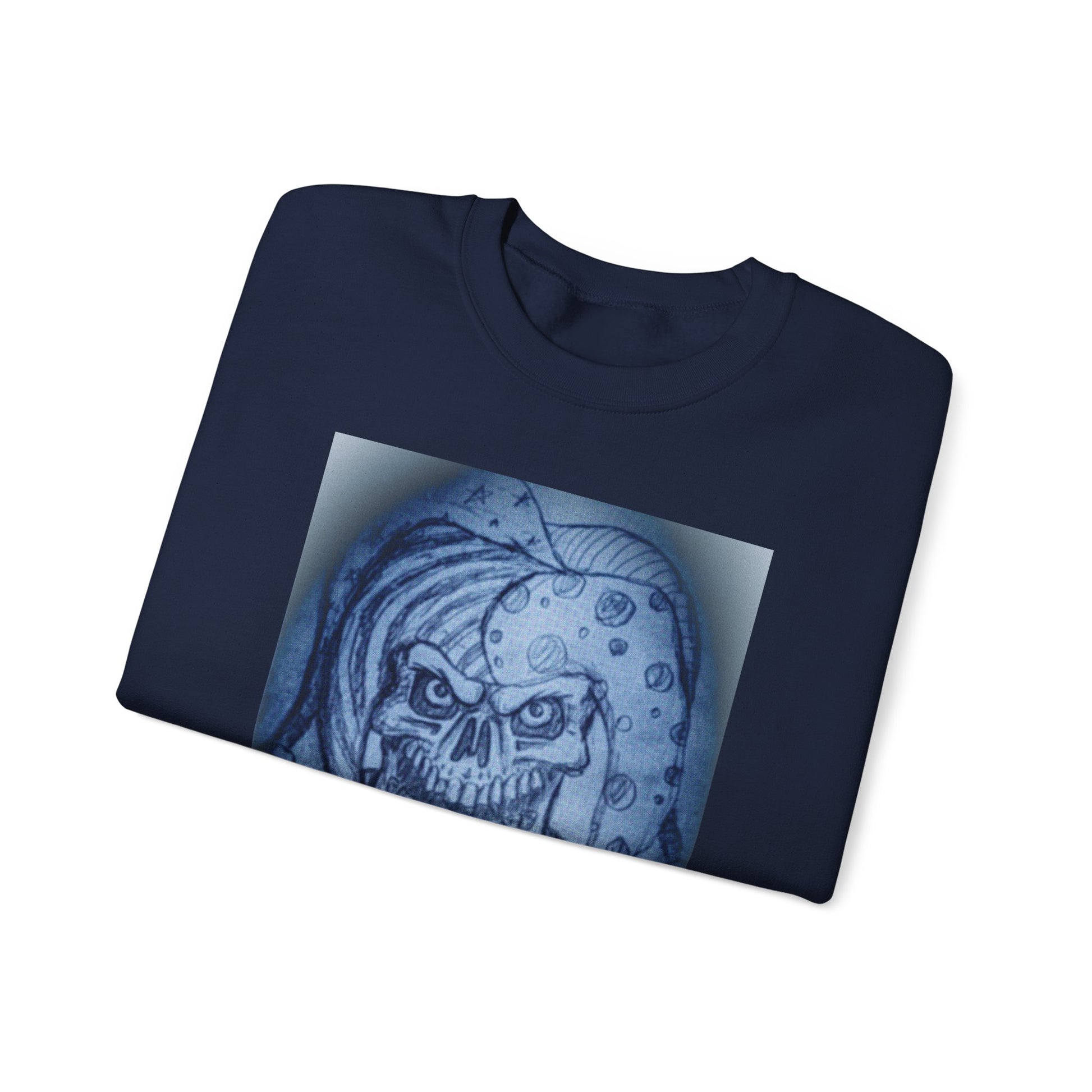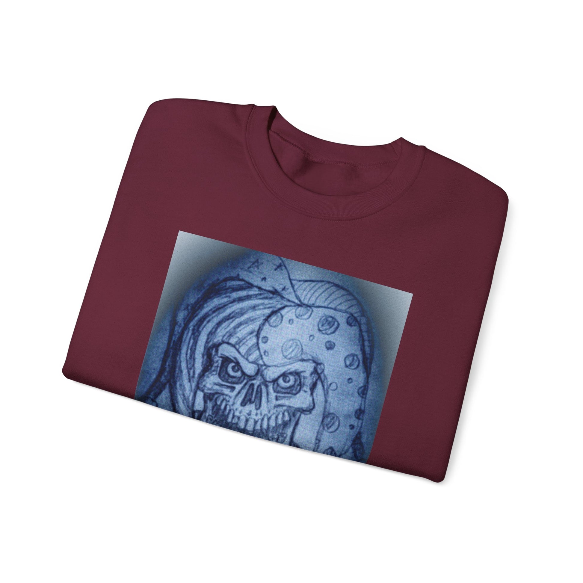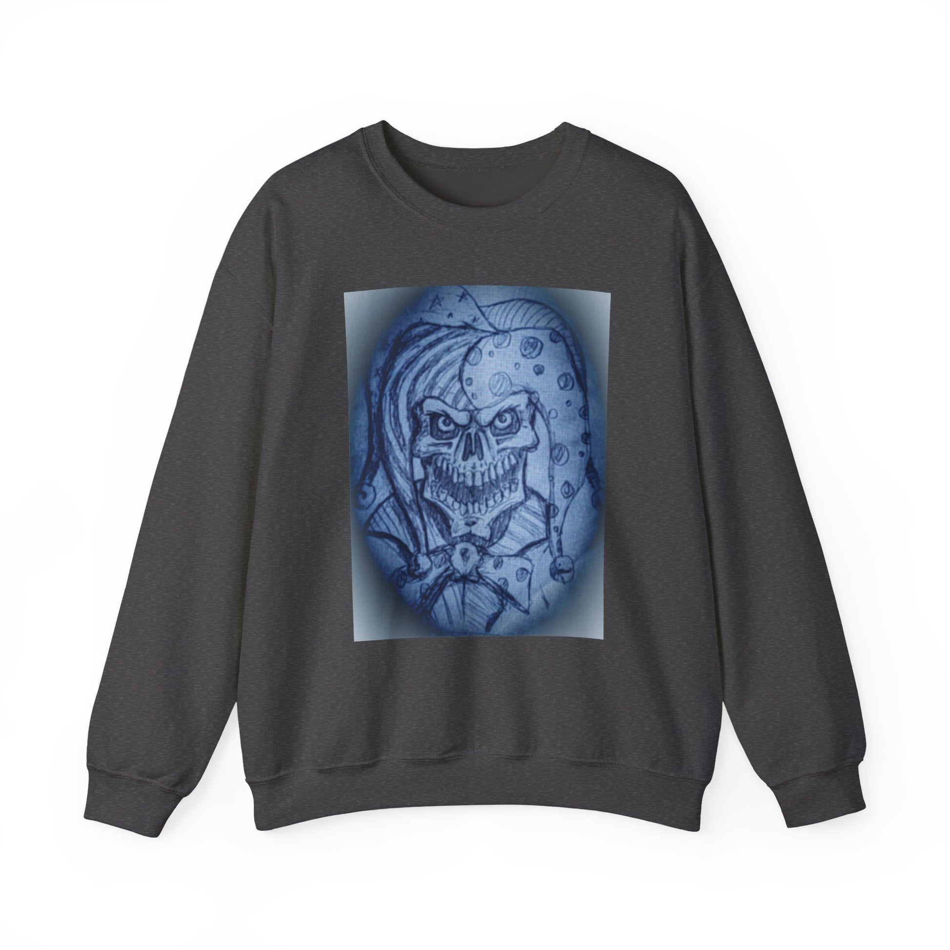 Jester Skull Graphic Sweatshirt, Unisex Heavy Blend Crewneck, Gothic Fashion, Streetwear Style, Halloween Gift, Edgy Casual Wear
