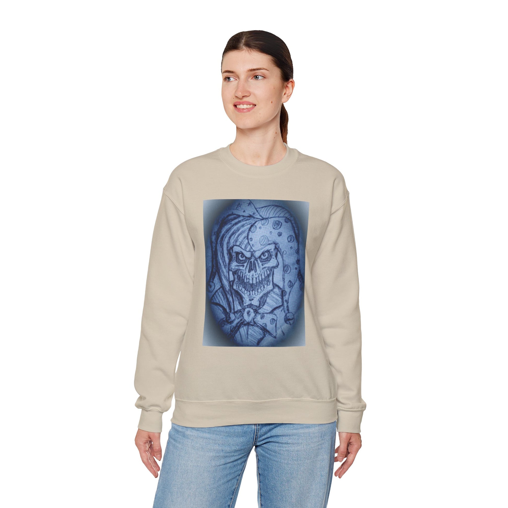 Elevate your casual wardrobe with this unisex heavy blend crewneck sweatshirt, perfect for showcasing your unique style. Its eye-catching jester skull original design featuring intricate graphics adds a cool, edgy vibe, making it an ideal choice for both relaxed outings and cozy nights in. This sweatshirt is not just a garment but a statement piece, perfectly suited for popping out during casual gatherings or lounging at home. It's a go-to for anyone who appreciates comfort without sacrificing flair and is perfect for gifting on occasions like birthdays, Halloween, or even just to treat yourself. Whether you're out with friends, enjoying a concert, or simply embracing a laid-back day, this sweatshirt has you covered.
