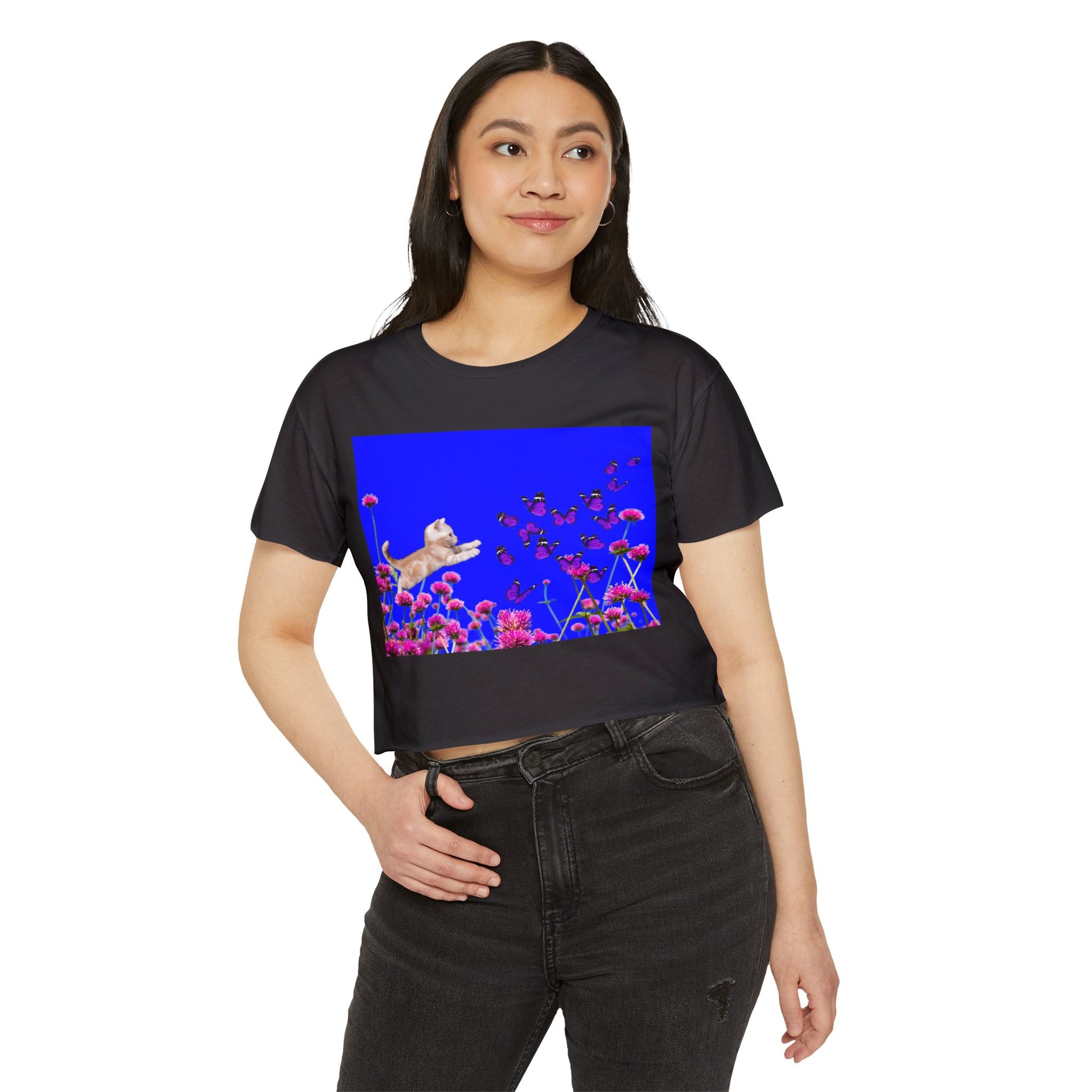 Get everyone ready for the festival season with beautiful custom crop tops. This one's made of 65% polyester, 35%-cotton blend – soft and durable enough to last the whole party weekend. It has that effortlessly stylish fit with raw-edge sleeves and hems and a cropped, relaxed fit.