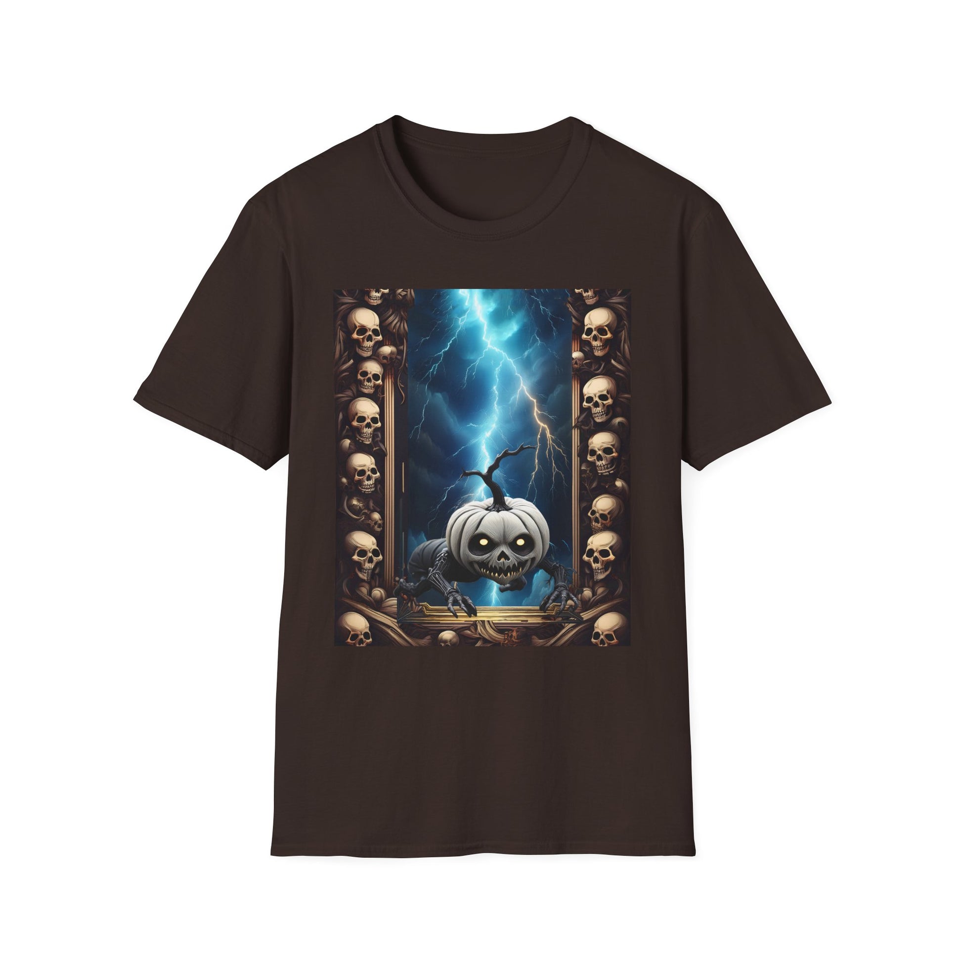 Spooky Skull Pumpkin Crawls from Frame T-Shirt, Halloween Shirt, Unisex Graphic Tee, Casual Halloween Wear, Fall Fashion